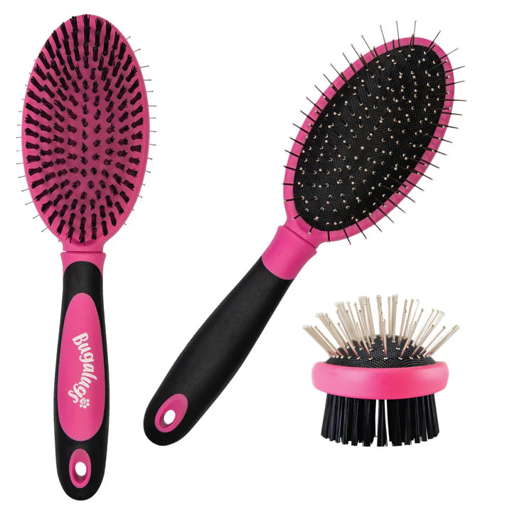 El cepillo de aseo 2 en 1 Bugalugs es muy suave. Con un diseño de doble cara, se adapta rápidamente a una amplia variedad de pelajes, garantizando un aseo sin complicaciones. Perfecto para todo tipo de mascotas, incluyendo gatos, perros, cachorros y gatitos de pelo largo y corto.